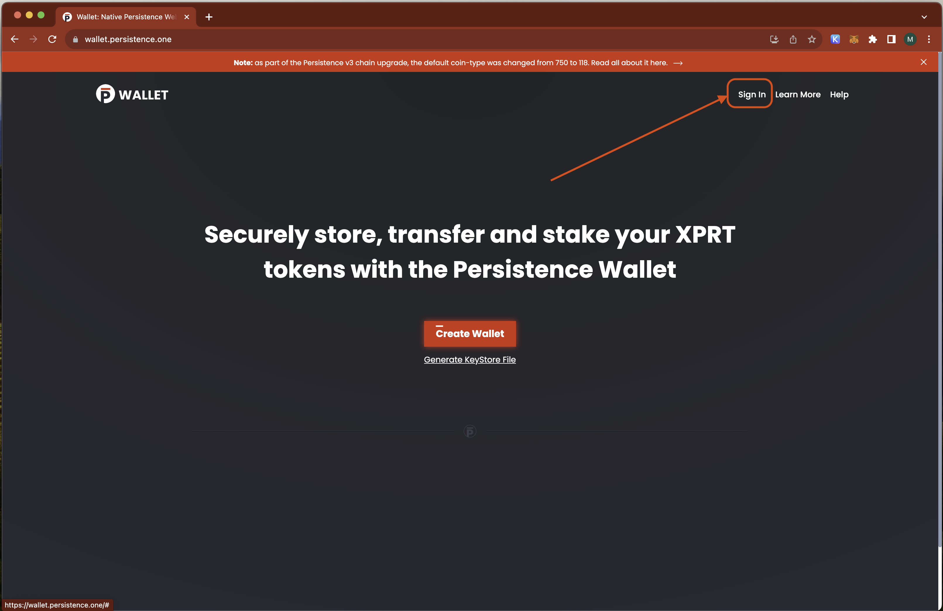 This is the correct URL: https://wallet.persistence.one